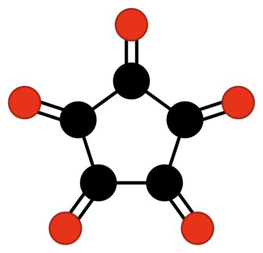 Keywords: Chemfm cyclopentanepentone.svg Molecular diagram of the almost hypothetical compound cyclopentanepentone or cyclopentanepentaone For the oxocarbon Wikipedia article Own 2009-07-14 Jorge Stolfi Cyclopentanepentone