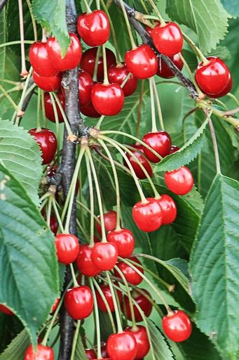 Keywords: cherries cherry fruits red fruit leaves fruit tree