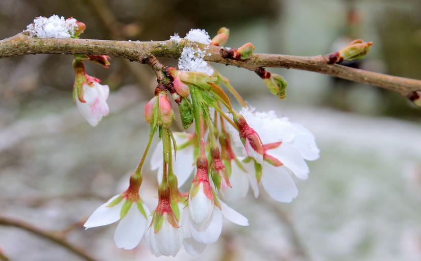 Keywords: cherry blossom japanese cherry trees blossom bloom spring snow cold nature