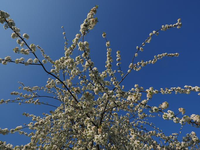 Keywords: cherry blossom white cherry spring blossom bloom white blossom bloom tree blossom branches herrlich overflowing lush blütenmeer flower tree summer day sunny day
