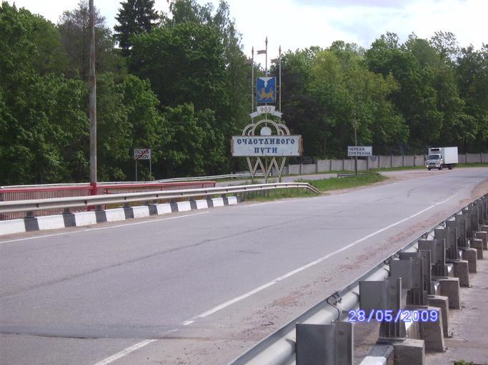 MAKE A MEME View Large Image Cheryokha 2009-05-28 15-23-34.jpg ru Вид на демонти ованный знак «Счастливого пути» п и выезде из Пскова и въезда в Че ёху со сто оны автомобильно...
