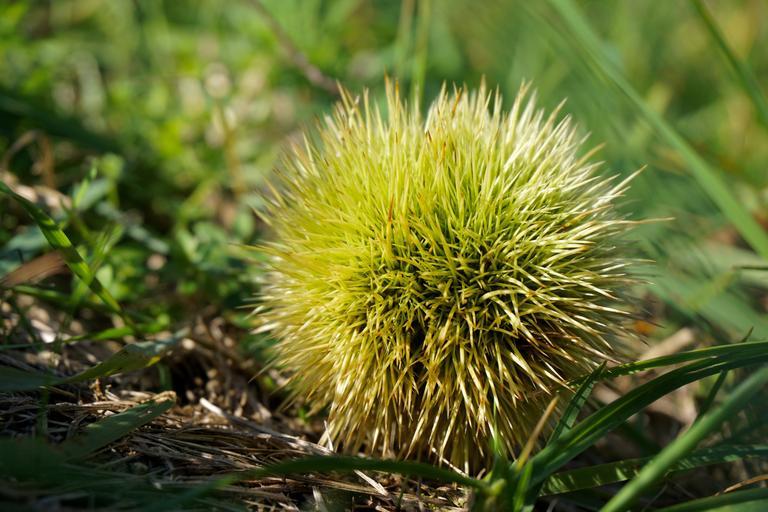 Keywords: chestnut autumn fruit prickly nature hedgehog sting close