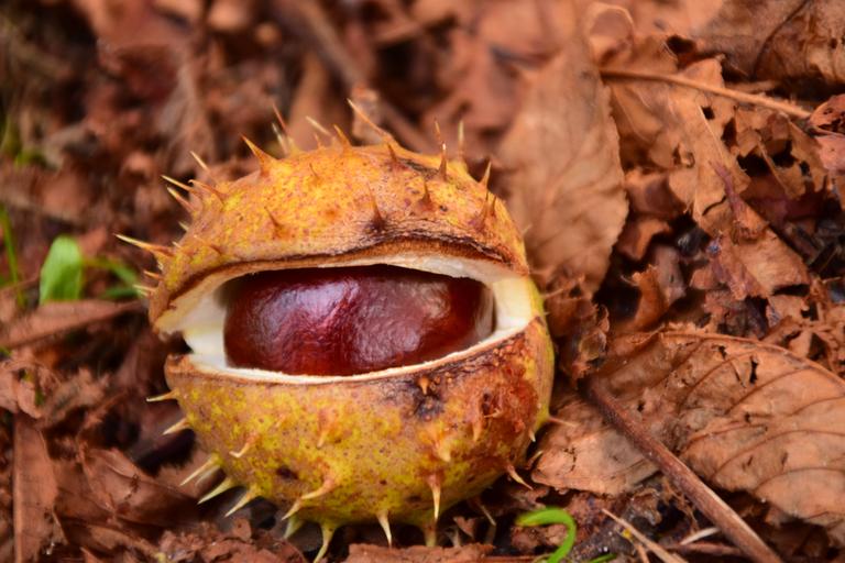 Keywords: chestnut buckeye ordinary rosskastanie autumn brown close open forest floor leaves dry