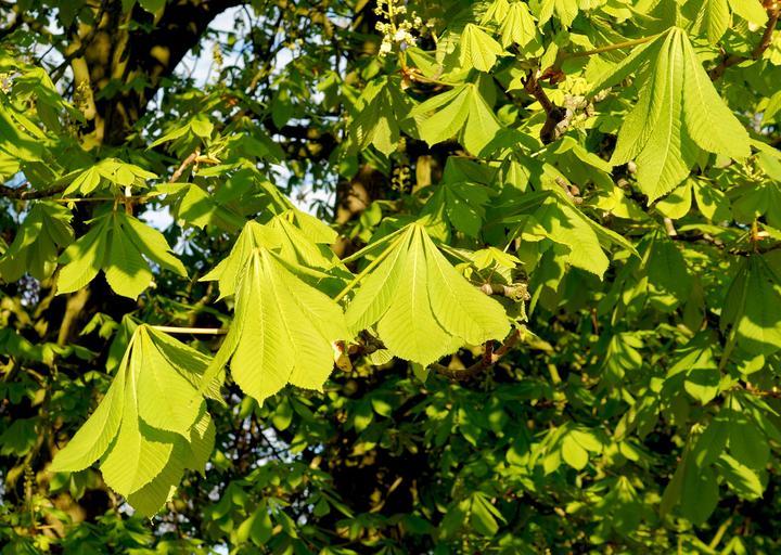 Keywords: chestnut leaves ordinary rosskastanie green branches bright sun light