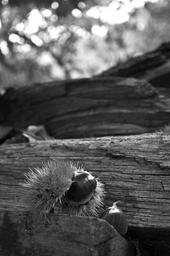 Keywords: chestnut wood black white chestnuts hedgehog autumn light shadow mood nature autumn fruit october deciduous tree spur
