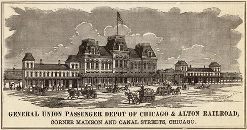 Keywords: Chicago Union Station C&A.jpg Cropped from Image 1885 Chicago Alton jpg PD-old Former buildings of Chicago Chicago in the 1880s Built in Illinois in 1881 Railway stations opened in 1881 Union Station Chicago 1885 in rail transport in the United States |
