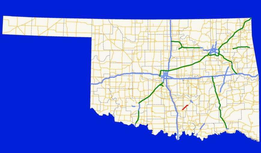 Keywords: Chickasaw turnpike-path.png Map of the Chickasaw Turnpike within the state of Oklahoma self-made in QGIS QGIS 2008-04-10 Scott5114 PD US road map legend Maps of turnpikes in Oklahoma Chickasaw Turnpike