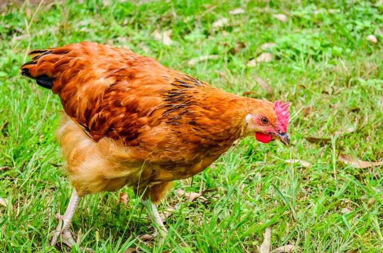 Keywords: chicken fowl hen farm bird poultry farming animal agriculture rural rooster beak red chick domestic livestock meat food feather brown female poultry farming natural chicken farm field grass outdoors organic