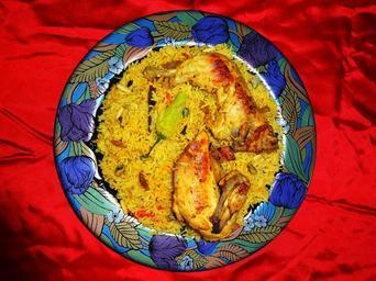Keywords: Chicken Mandi Rice مندي دجاج.JPG en مندي دجاج Chicken Mandi Mandi Rice Native to Yemen dish own Miansari66 Cuisine of Yemen Foreign cuisines in Pakistan Cc-zero