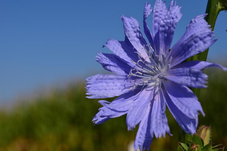 Keywords: chicory pointed flower roadside nature plant close flower macro summer wild flower blue pistil sunshine sky greeting card beautiful decorative violet blossom bloom