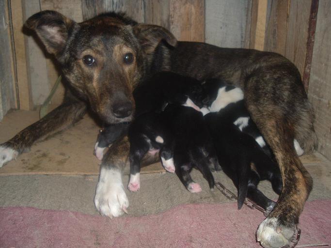 Keywords: Chienneavecchiots.JPG Chienne avec chiots Checker comment elle a l'air excitée O 2006-08-30 own assumed Bunu vio~commonswiki Mixed-breed puppies Nursing puppies Canine K locus