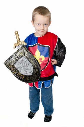 Keywords: child baby kid bairn binoculars little one people dress halloween knight fun face sword shield