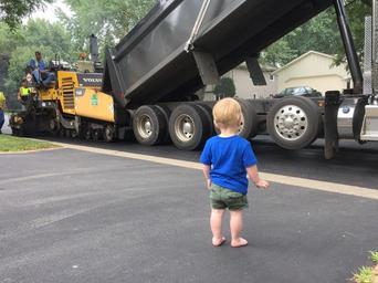 Keywords: child boy truck construction driveway street observation learning
