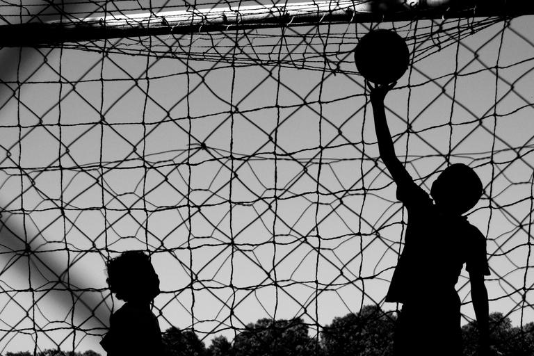 Keywords: child boys ball football silhouette play child playing street play