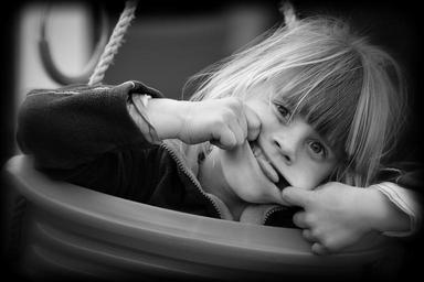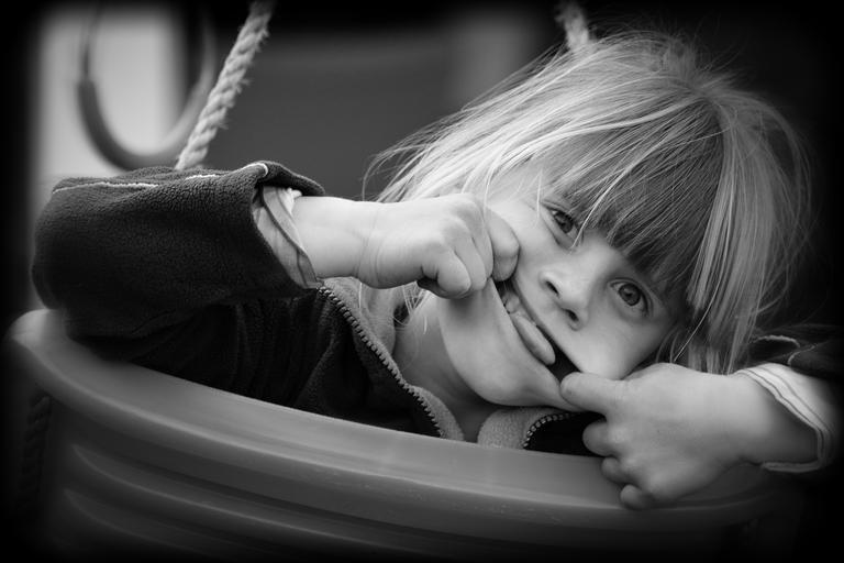 Keywords: child girl face making a face black and white recording schauckel