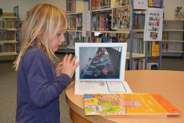 Keywords: child girl people library books read