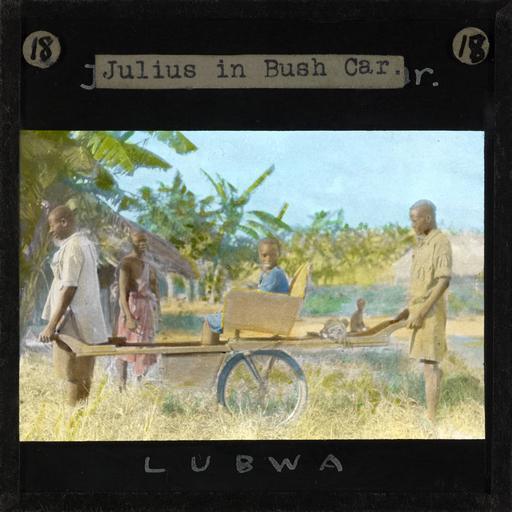 | Keywords: Child in Bush Car, Lubwa, Zambia, ca.1905-ca.1940 (imp-cswc-GB-237-CSWC47-LS6-018).jpg en <br> Child in Bush Car Lubwa Zambia ca 1905-ca 1940 Julius in Bush Car Photograph of a young boy sitting in a bush car a portable single chair which is wheeled on a wooden frame The boy is sitting in a wooden chair above a single wheel There is one man at the front pulling the car and one man at the back pushing There is a man standing behind the bush car and round thatched huts can be seen in the background ; This belongs to a series of Church of Scotland Foreign Missions Committee lantern slides relating to Lubwa mission Lubwa mission at Chinsali in north-eastern Zambia began as an outpost of the Free Church of Scotland mission in Malawi The first missionary expeditions to the Chinsali area were carried out by student teachers from the Overtoun Institute at Khondowe The Bemba are the largest ethnic group in northern Zambia and the first Free Church of Scotland establishment among the Bemba was a school at Lubwa opened in 1905 by the Malawian teacher David Kaunda and his wife Photographer Unknown Filename imp-cswc-GB-237-CSWC47-LS6-018 tif Coverage date 1905/1940 Part of collection International Mission Photography Archive ca 1860-ca 1960 Type images Part of subcollection Photographs from the Centre for the Study of World Christianity University of Edinburgh U K ca 1900-ca 1940s Repository name Centre for the Study of World Christianity Archival file impaunpub_Volume7/1578 url Repository address The University of Edinburgh School of Divinity New College Mound Place Edinburgh EH1 2LX United Kingdom Geographic subject country Zambia Format aacr2 1 lantern slide 8 x 8 cm Geographic subject continent Africa Rights Contact the repository for details Part of series Lubwa LS6 Repository email divinity-CSWC ed ac uk Subject lcsh Keyword Transportation; Children Date created 1905/1940 Publisher of the digital version University of Southern California Libraries Subject aat genre group portraits Format aat lantern slides Legacy record ID impa-m68676 Access conditions http //www ed ac uk/schools-departments/divinity/research/centres/world-christianity/collections-resources File GB 237 CSWC47/LS6/18 1905/1940 author http //digitallibrary usc edu/cdm/ref/collection/p15799coll123/id/64698 PD-old-70-1923 Magic lantern images Images from USC Digital Library uploaded by Fæ International Mission Photography Archive ca 1860-ca 1960 |