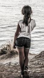 Keywords: child kid girl looking sea childhood summer