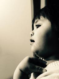 Keywords: child look girl face black and white portrait
