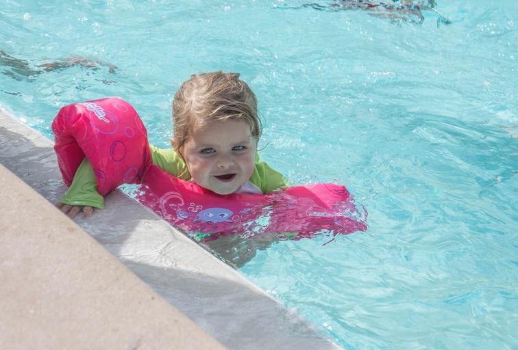 Keywords: child swimming arm floats pool water fun happy people girl summer blue kid joy kids swimming leisure smile childhood cute vacation young playing summer fun active sport