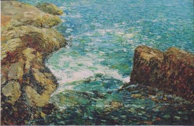 | Keywords: Childe Hassam - Brandung und Felsen - 1906.jpeg  Brandung und Felsen Surf and rocks Öl auf Leinwand Oil on canvas 54 x 66 7 cm Detroit The Detroit Institue of Arts repro from art book 1906 Creator Childe Hassam PD-old Other versions Paintings of seascapes by Childe Hassam |