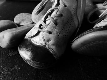 Keywords: childhood shoe shoelace leather leather shoes memory learn to walk growth fashion past worn footwear first steps development small child