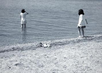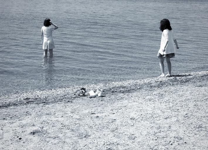 MAKE A MEME View Large Image children play beach black and white water sea lake mood