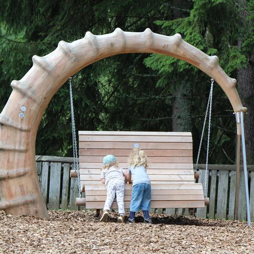 Keywords: children play nature swing child leisure playground dear happy fun more movement play outside out swing device game device girl blond children's playground