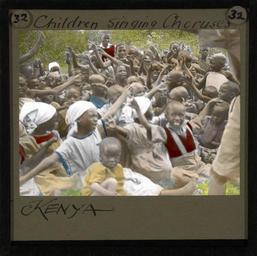 | Keywords: Children Singing Choruses, Kenya, ca.1905-ca.1940 (imp-cswc-GB-237-CSWC47-LS7-032).jpg en <br> Children Singing Choruses Kenya ca 1905-ca 1940 Photograph of a group of children singing songs The children are out doors and are sitting in a tightly packed group Many are holding their hands up in the air ; This belongs to a series of Church of Scotland Foreign Missions Committee lantern slides relating to the Kikuyu Mission in Kenya which was set up by Church of Scotland missionaries Hospitals were established by Scottish missionaries in Kikuyu in 1908 in Tumutumu in 1909 and in Chogoria in 1922 The missionaries also introduced the Presbyterian Church to the area The Kikuyu are Kenyaas most populous ethnic group Photographer Unknown Filename imp-cswc-GB-237-CSWC47-LS7-032 tif Coverage date 1905/1940 Part of collection International Mission Photography Archive ca 1860-ca 1960 Type images Part of subcollection Photographs from the Centre for the Study of World Christianity University of Edinburgh U K ca 1900-ca 1940s Repository name Centre for the Study of World Christianity Archival file impaunpub_Volume7/1639 url Repository address The University of Edinburgh School of Divinity New College Mound Place Edinburgh EH1 2LX United Kingdom Geographic subject country Kenya Format aacr2 1 lantern slide 8 x 8 cm Geographic subject continent Africa Rights Contact the repository for details Part of series Kenya Mission LS7 Repository email divinity-CSWC ed ac uk Subject lcsh Keyword Singing; Children Date created 1905/1940 Publisher of the digital version University of Southern California Libraries Subject aat genre group portraits Format aat lantern slides Legacy record ID impa-m68746 Access conditions http //www ed ac uk/schools-departments/divinity/research/centres/world-christianity/collections-resources File GB 237 CSWC47/LS7/32 1905/1940 date created author http //digitallibrary usc edu/cdm/ref/collection/p15799coll123/id/64753 PD-old-70-1923 Magic lantern images Images from USC Digital Library uploaded by Fæ International Mission Photography Archive ca 1860-ca 1960 |