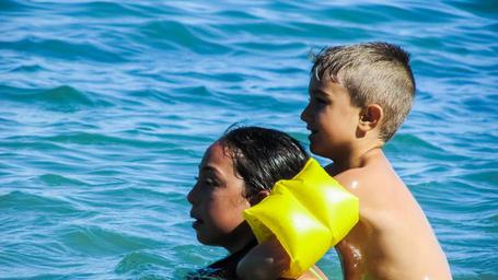 Keywords: children swimming playing water fun beach summer vacation kid family childhood family vacations
