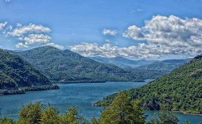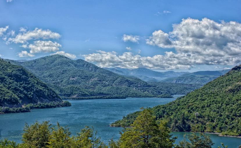 Keywords: chile reservoir water mountains valley sky clouds landscape scenic forest trees nature outside country countryside rural vista beautiful hdr