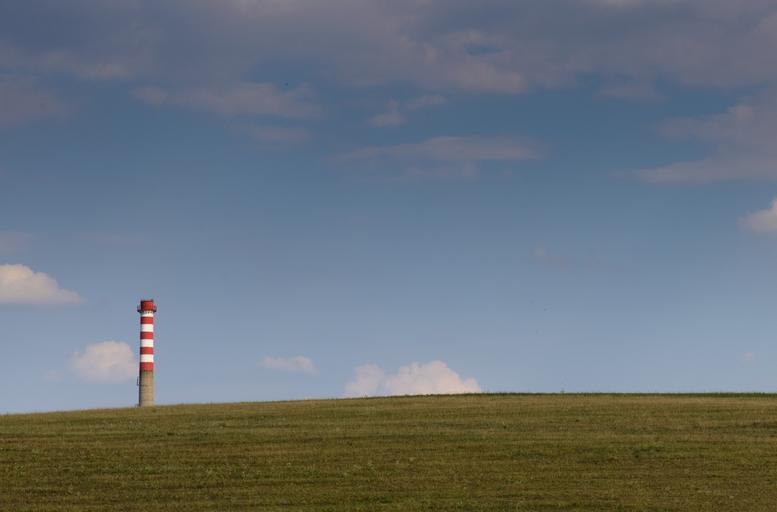 Keywords: chimney horizon field brown green sky clouds red high