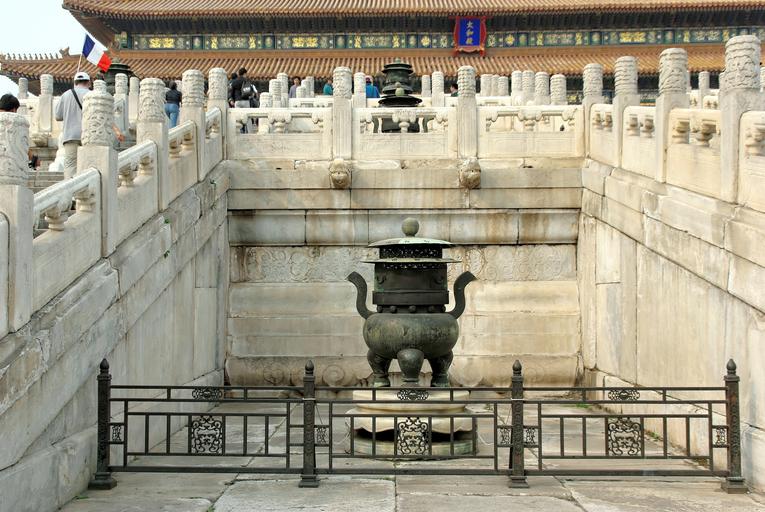 Keywords: china pekin beijing forbidden city censers decoration marble imperial flag emperor