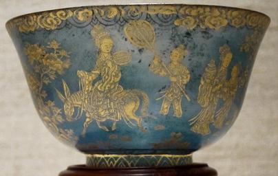 | Keywords: Chinese nephrite bowl painted in gold, 18th century, Dayton Art Institute.JPG en Chinese jade nephrite bowl painted in gold 18th century Dayton Art Institute own Wmpearl photo 2012 Chinese art in the Dayton Art Institute Qing Dynasty Jade Jade bowls Cc-zero |