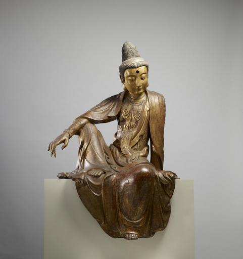 | Keywords: Chinese - Seated Guanyin (Kuan-yin) Bodhisattva - Walters 25256 (2).jpg This late Ming dynasty dry-lacquer sculpture is an image of the bodhisattva Guanyin an enlightened being venerated in Chinese Buddhism as an embodiment of compassion Called a Water-moon Guanyin or Guanyin sitting in Royal Ease this theme and its iconography derive from textual inspiration found in the Avatamsaka Sutra the central text of the Hua-yen school of Buddhism and indigenous Chinese traditions The dry lacquer technique was popular but examples of this size and degree of refinement are rare late 14th-15th century dry lacquer gold and paint cm 137 2 78 7 58 4 accession number 25 256 4483 C T Loo Co Paris Doris Duke October 7 1937 by purchase Doris Duke Charitable Foundation Walters Art Museum Gift of the Doris Duke Charitable Foundation's Southeast Asian Art Collection 2006 place of origin China <gallery> File Chinese - Seated Guanyin Kuan-yin Bodhisattva - Walters 25256 jpg </gallery> Walters Art Museum license Seated Guanyin - Walters 25256 |