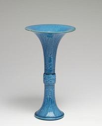| Keywords: Chinese - Vase - Walters 492310 (2).jpg In the form of an ancient bronze gu ku between 1735 1795 porcelain with copper and lead oxide turquoise glaze cm 27 5 accession number 49 2310 26061 William T / Henry Walters Collection Baltimore date and mode of acquisition unknown Walters Art Museum Henry Walters Acquired by William T or Henry Walters Masterpieces of Chinese Porcelain Walters place of origin China <gallery> File Chinese - Vase - Walters 492310 jpg </gallery> Walters Art Museum license Art of China in Masterpieces of Chinese Porcelain Walters Chinese porcelain in the Walters Art Museum Porcelains of the Qing Dynasty Media contributed by the Walters Art Museum needs category review |