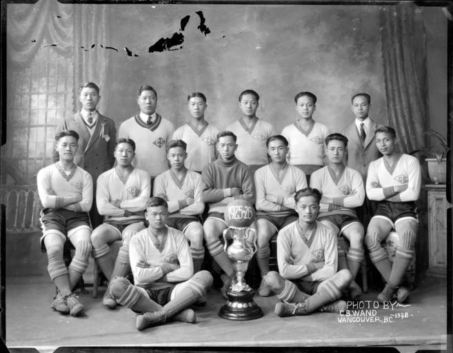 | Keywords: blackandwhite monochrome team sport sport people photo border black and white DESCRIPTION: Group portrait of Chinese volleyball team 1925-1926 VPL Accession Number: 58896 Date: 1926 Photographer/Studio: Wand, C.B. SUBJECTS: Men, Sports teams, Portraits, Group, Chinese Canadians Location: British Columbia - Vancouver More information on our historical photograph collection: www.vpl.ca/historicalphotos DESCRIPTION: Group portrait of Chinese volleyball team 1925-1926 VPL Accession Number: 58896 Date: 1926 Photographer/Studio: Wand, C.B. SUBJECTS: Men, Sports teams, Portraits, Group, Chinese Canadians Location: British Columbia - Vancouver More information on our historical photograph collection: www.vpl.ca/historicalphotos |