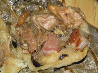Keywords: Chinesecuisine Redcooking.jpg Chinese cuisine Red cooking meat sample in Lotus Leaf Wrap Own 2007-10 Benjwong Cooked meats
