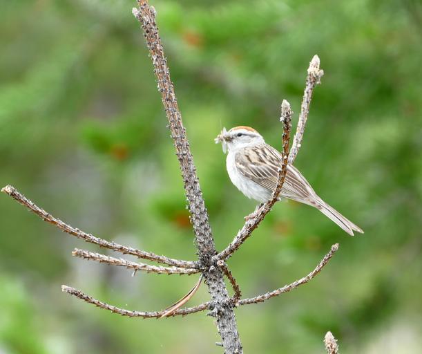 Keywords: yellowstone yellowstone national park yellowstonenationalpark birds wildlife outdoor animal bird field landscape songbird depth of field Chipping sparrow with food in mouth at West Thumb Geyser Basin; Diane Renkin; July 2015; Catalog #20250d; Original #P1070368 Chipping sparrow with food in mouth at West Thumb Geyser Basin; Diane Renkin; July 2015; Catalog #20250d; Original #P1070368