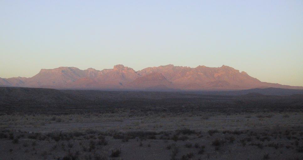 Keywords: Chisos Mountain Sunrise.jpg Chisos mountain range from the desert to the east at sunrise 22 Feb 2002 This photo shows the entire mountain range the only mountain range contained entirely within a national park own Rfgagel 2002-02-22 <gallery>File 99 216ChisoMountainsSunrise JPG</gallery> Chisos Mountains Sunrises of Texas |