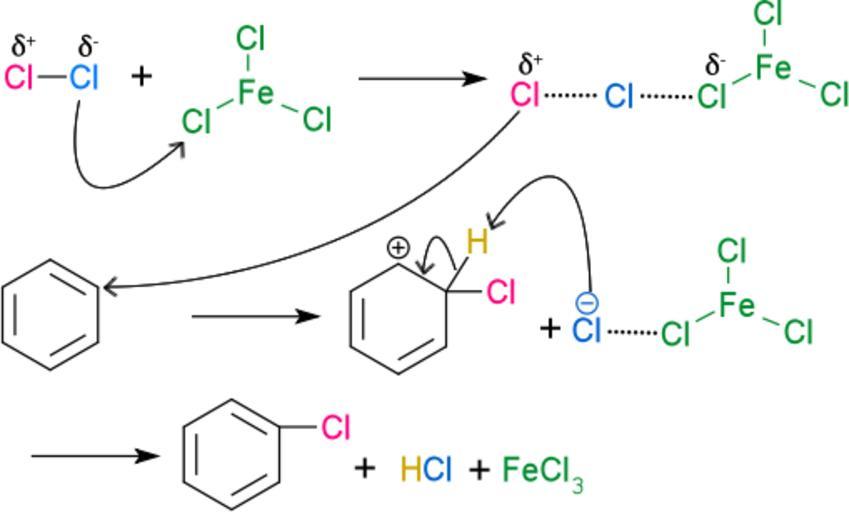 Keywords: Chloracia(mech).png en Mechanism of the chloration of benzene sk Mechanizmus chlorácie benzénu 2012-04-10 own PeetPb cc-zero Uploaded with UploadWizard Reaction mechanisms Chlorination reactions Reactions of benzene Chlorobenzene