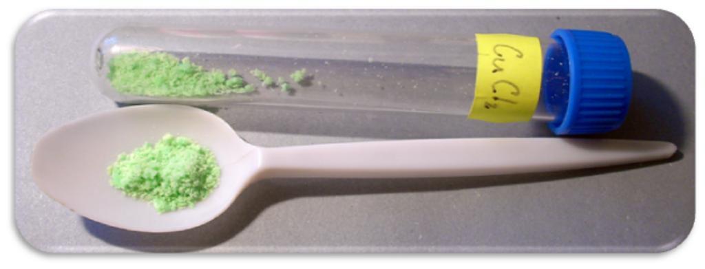 Keywords: Chlorid měďnatý.PNG Chlorid měďnatý - CuCl2 own 2007-06-24 Ondřej Mangl Není nutno Copper II chloride Samples of inorganic compounds