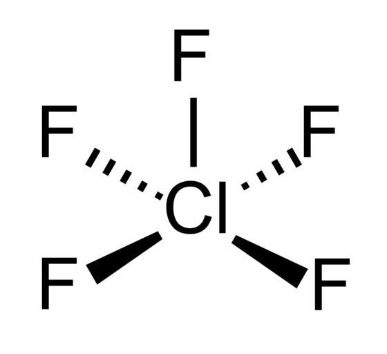 | Keywords: Chlorine pentafluoride.svg en Structure of chlorine pentafluoride according to w VSEPR_theory created with BKChem and Inkscape de Struktur von Chlorpentafluorid laut w de VSEPR-Modell erstellt mit BKChem und Inkscape own Dr Al K Lisch 2009-04-14 Chlorine pentafluoride |