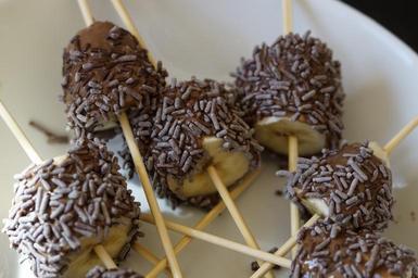 Keywords: choco bananas banana pieces skewers chocolate brand coating fruit skewer schokospiess fruit dessert sweet colorful dessert chocolate coating chocolate spit bananas chocolate chips