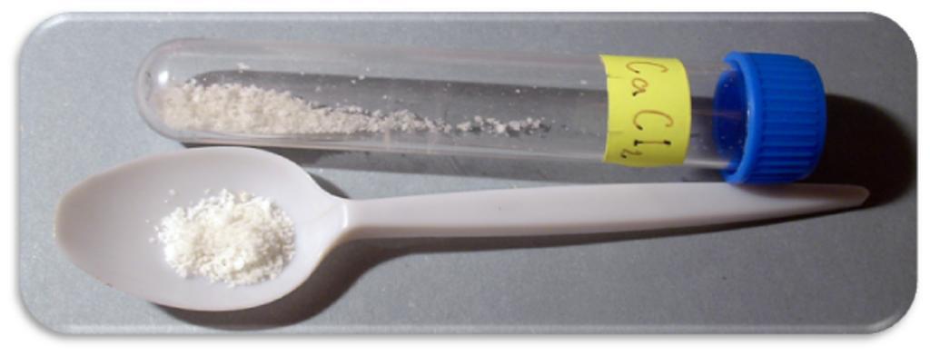 Keywords: Chorid vápenatý.PNG Chlorid vápenatý - CaCl2 own 2007-06-24 Ondřej Mangl Není nutno Calcium chloride Samples of chemical compounds
