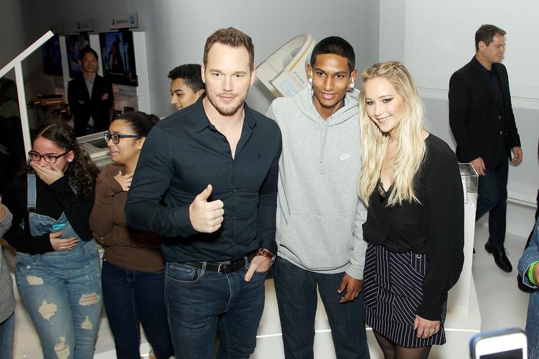 Keywords: new york newyork ny us New York, NY - 12/6/16: Chris Pratt and Jennifer Lawrence Surprise Ghetto Film School Students at the Sony Square Passengers Experience in NYC. New York, NY - 12/6/16: Chris Pratt and Jennifer Lawrence Surprise Ghetto Film School Students at the Sony Square Passengers Experience in NYC.