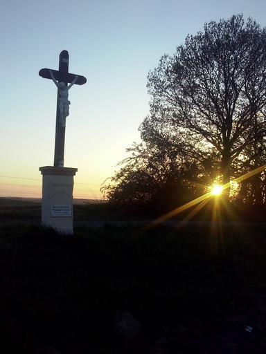 Keywords: christ sunset landscape dusk glow hungary cross wood park in the evening