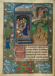 | Keywords: Christ tells his mother of what is to come; Judas on his way to the chief priest; Judas bargaining with the chief priests and receiving his silver (f. 27v).jpg author Vaux Passional Illumination on parchment Christ tells his mother of what is to come; Judas on his way to the chief priest; Judas bargaining with the chief priests and receiving his silver c 1503-4 This digital image can be seen in its original context https //www llgc org uk/discover/digital-gallery/digitalmirror-manuscripts/the-middle-ages/the-vaux-passional/ here Cc-zero object history Peniarth 482D is a manuscript written by one scribe on parchment probably in London either in the late 15th century or at the beginning of the 16th As in the case of Peniarth MS 481D The Battles of Alexander the Great it is one of the most elaborately decorated medieval manuscripts in the Library and a rare survival in its original binding Its importance also lies in its connection to the Royal households of Henry VII and Henry VIII See cropped version of this image <br/> <br/> Peniarth 482D Vaux Passional Images uploaded as part of NLW - WMUK collaboration Uploaded with UploadWizard Pact of Judas |