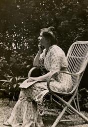 | Keywords: the women's library thewomenslibrary lse library lselibrary suffrage suffragette uk christabel pankhurst christabelpankhurst chair newspaper hires outdoor monochrome 7JCC/O/02/116 Photograph, printed, paper, monochrome, Christabel Pankhurst seated in a cane chair in a garden, a newspaper on her lap, wearing a belted white dress printed with a motif of circles, full length, left profile, probably taken at the same time as 7JCC/0/2/115a and b 7JCC/O/02/116 Photograph, printed, paper, monochrome, Christabel Pankhurst seated in a cane chair in a garden, a newspaper on her lap, wearing a belted white dress printed with a motif of circles, full length, left profile, probably taken at the same time as 7JCC/0/2/115a and b |