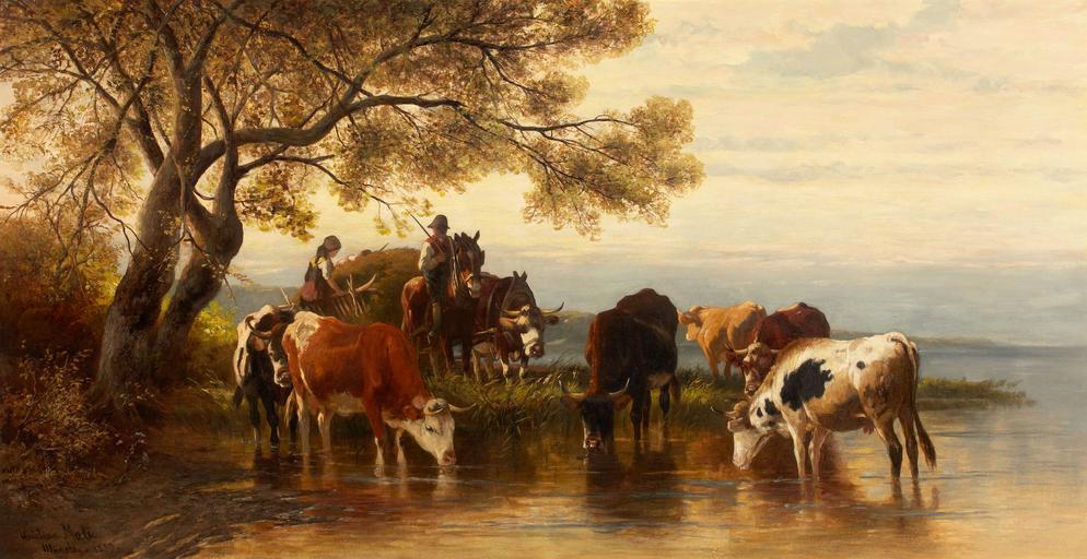 | Keywords: Christian Friedrich Mali - Landschaft mit Bauern und Kühen.jpg Artwork Creator Christian Mali Landscape with Peasants and Cattle 1880 oil canvas cm 66 127 object history credit line Signed and dated lower left Christian Mali/ München 1880 accession number http //fineart ha com/c/item zx saleNo 5035 lotNo 79040 Heritage Auctions PD-Art-100 Christian Mali Paintings of cattle Landscape paintings of Germany 1880 paintings Images from Heritage Auctions 1880s landscape paintings | ||||